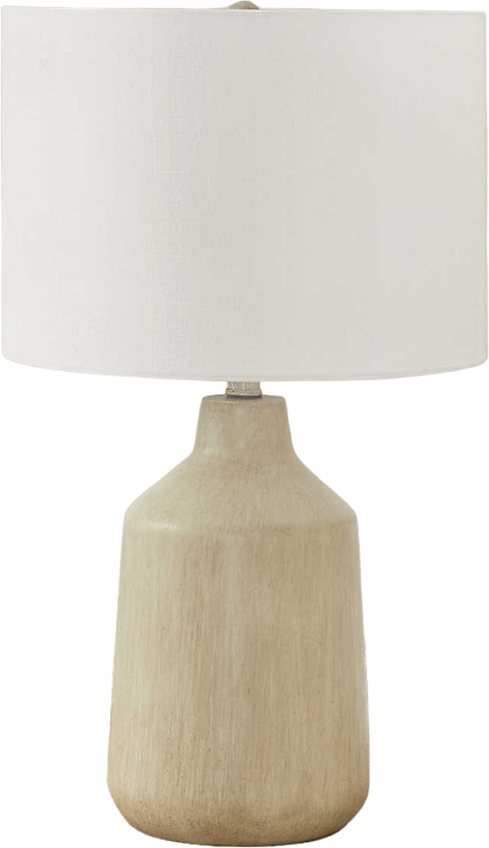 La base lisse en béton beige est complétée par l'abat-jour en tissu ivoire et finie par un épi de faîtage rond beige. Cette lampe polyvalente éclaire facilement une table d'appoint, une table de nuit ou une table de chevet en actionnant simplement un interrupteur à trois voies qui accueille une seule ampoule (non incluse) pour une puissance maximale de 100 W/120 V, ce qui vous permet de régler le niveau de luminosité. Fabriquée avec des matériaux de qualité durable assurant sa longévité, cette lampe est assortie d'une garantie limitée de 2 ans contre tout défaut de fabrication, pour un achat en toute sérénité.