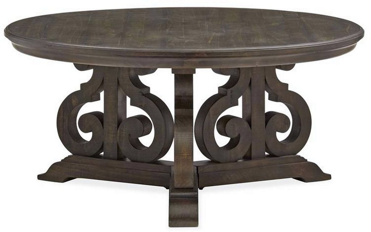 Old World charm abounds in the Bellamy table collection. Gracious S-curved carved bases support overlaid solid pine tops finished Peppercorn. Matte black with pewter highlights metal stretchers and hardware create the perfect accent to set the mood for stunning European influenced elegance.En savoir plus