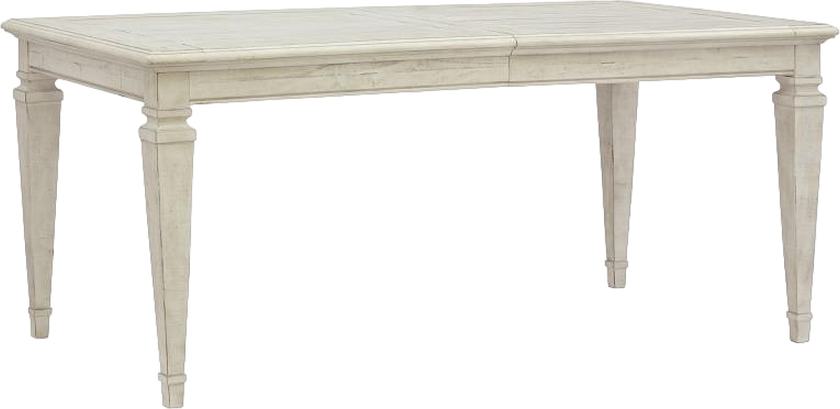 Table can be extended to 86" x 38" x 30" (218.44 cm x 96.52 cm x 76.2 cm) with one center removable leaf (18" or 45.72 cm per piece)