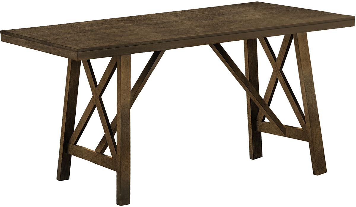 This transitional style counter height table features angled trestle legs that add a fashionable touch. Crafted with durably designed solid wood legs, this dining table is built to last. The easy to clean veneer top ensures maintenance is a breeze, making it ideal for busy households. With the easy to assemble process, you will have this chic piece set up in no time. Backed by a 2 year limited warranty against manufacturer defects, you can enjoy peace of mind knowing your investment is protected. Whether you place it in the dining room or kitchen, this fashionable style dining table is sure to become the focal point of your home. Pair it with some matching chairs (sold separately) for a sleek looking dining space.