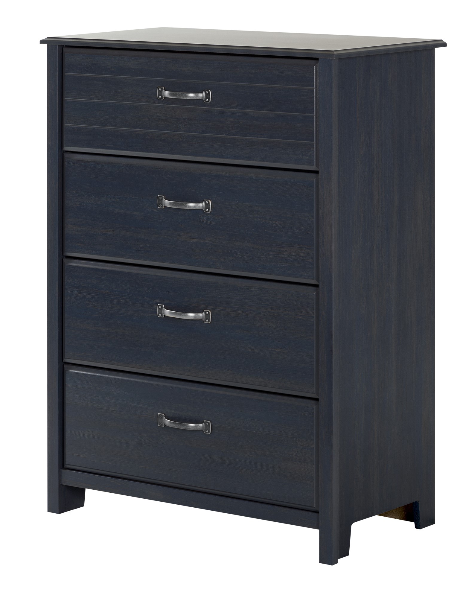 This chest in blueberry color finish features metal handles and 4 drawers for storage.En savoir plus