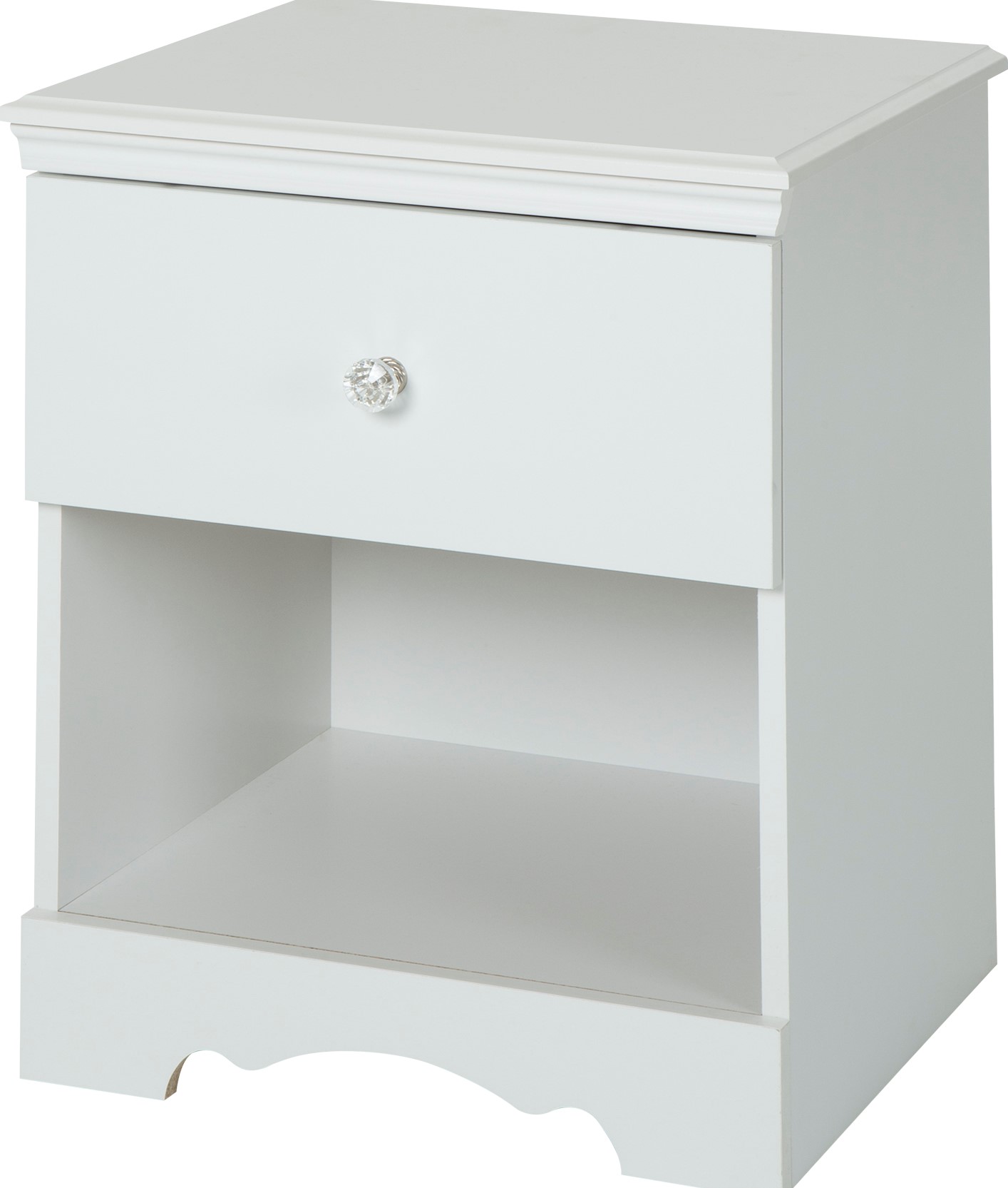 This nightstand from the Cyrstal Collection will add a sense of femininity to any room. Including thoughtful details such as a delicate cutout kick plate, a beveled top, and a crystal-like clear plastic knob.En savoir plus