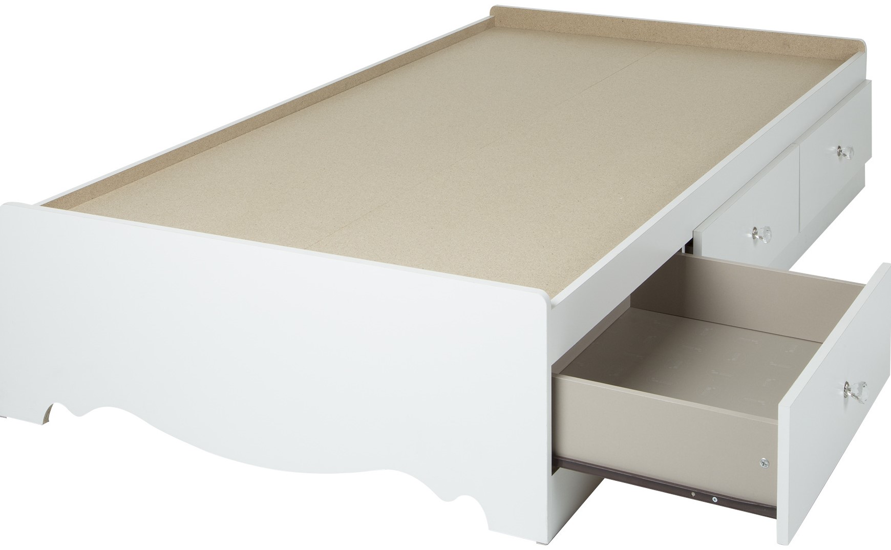 This trendy bed is the perfect solution for tighter spaces. This mates bed has 3 convenient drawers with smooth opening metal slides, featuring plenty of storage for clothes, bedding, or seasonal items. All 3 drawers are on the same side of the bed frame, which is reversible, allowing the drawers to be accessed from either side. The bed is an economic choice as it does not require a box spring.En savoir plus