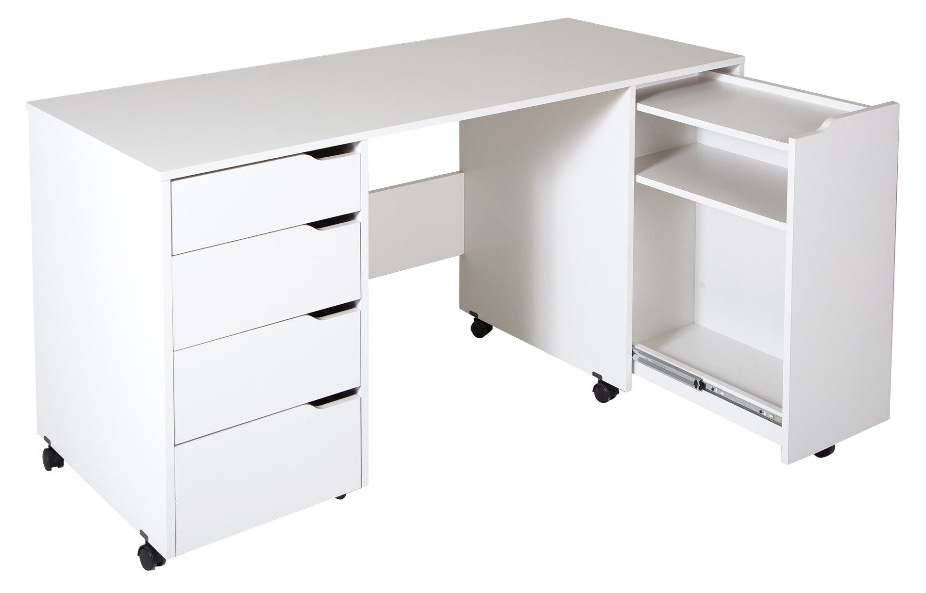 Que ce soit pour faire du bricolage, de la couture ou de la confection de bijoux, chaque artiste a besoin d’un espace de travail dédié. Ce bureau possède 3 grands tiroirs pour ranger vos tissus, ciseaux, aiguilles et encore plus. Cette table est aussi munie d’une tablette coulissante avec goujons amovibles pour bien classer et ranger les bobines de fil. Finalement, pour encore plus de rangement, nous avons ajouté un module coulissant à cette table de bricolage. Vous pourrez tirer dessus et facilement accéder à votre machine à coudre et tout le matériel dont vous avez besoin. Comme ce rangement est rétractable, vous n’aurez pas l’impression que votre bureau prend trop d’espace dans votre pièce. Grâce à ce meuble spécialement adapté à vos besoins, vous n’aurez plus besoin de vous installer sur la table de cuisine et devoir tout ranger à la fin de chaque séance.En savoir plus