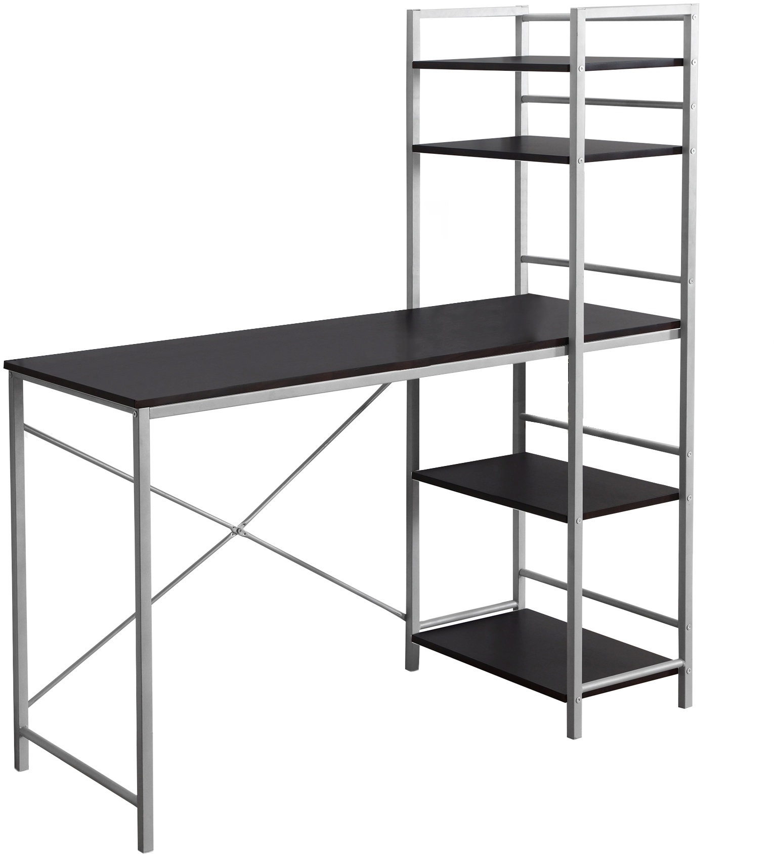 Ce bureau simple et minimaliste vous offre un espace de travail compact qui est idéal pour votre apartement, condo ou autre petits espaces. Avec ces lignes pures et son fini espresso, ce bureau s'agencera facilement au décors de votre maison. Quatre étagères ouvertes et fixes peuvent être utilisé pour y placer des photos et objets décoratifs tandis que ça grande surface de travail vous offres amplement d'espace pour votre ordinateur portatifs et vos fournitures de bureau. Ce bureau moderne pour la maison rassemble fonction, rangement et tendances en un seul meuble.Read More
