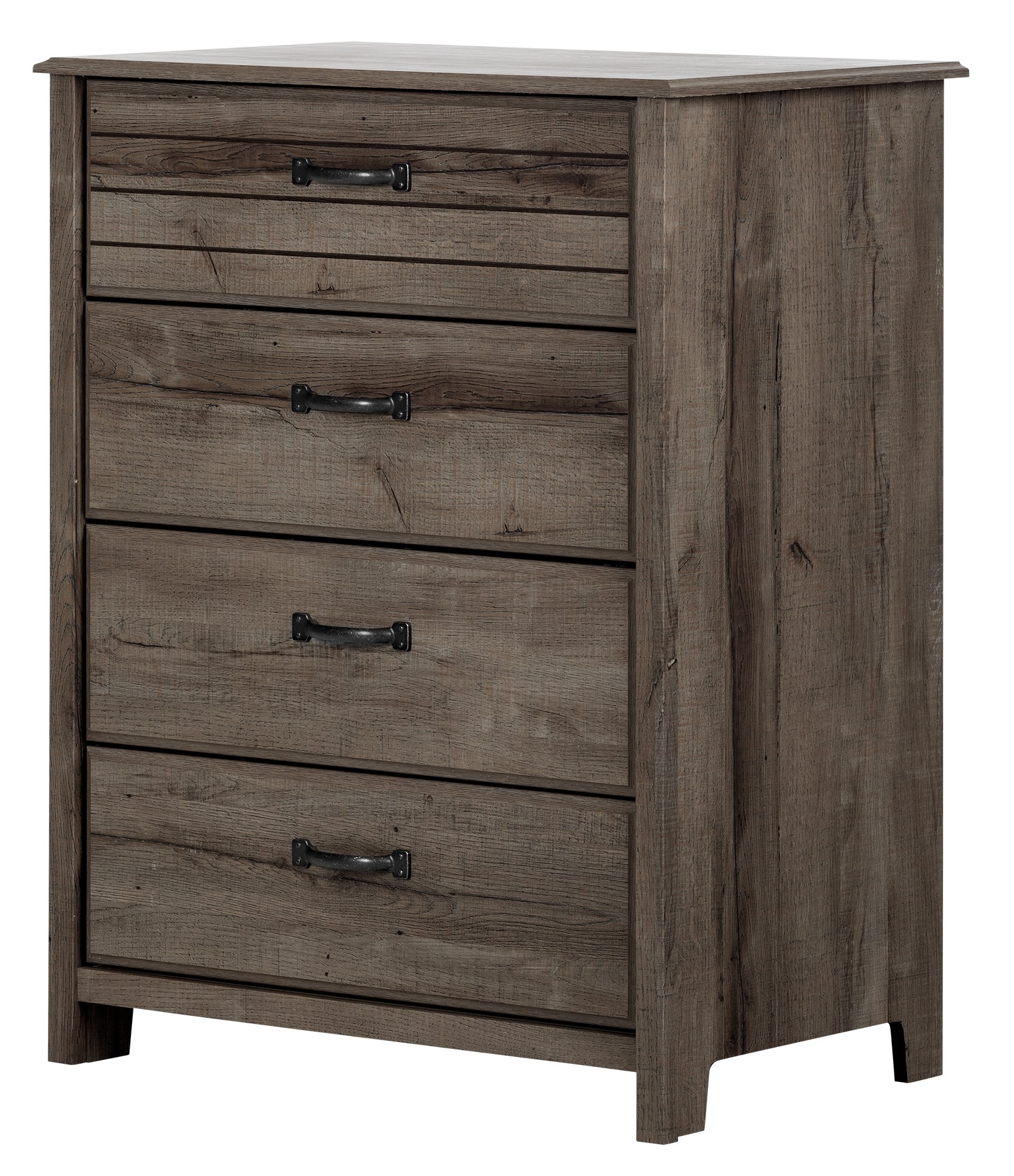 Cette commode en finition couleur chêne d'automne comporte des poignées en métal et 4 tiroirs de rangement.Read More