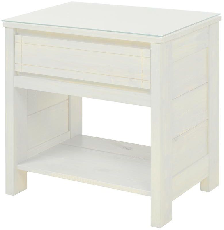Dessus : Pin jaune du sud massif avec un dessus en verre trempé ; Arrière : Pin jaune du sud massif ; Fond de tiroir : Contreplaqué