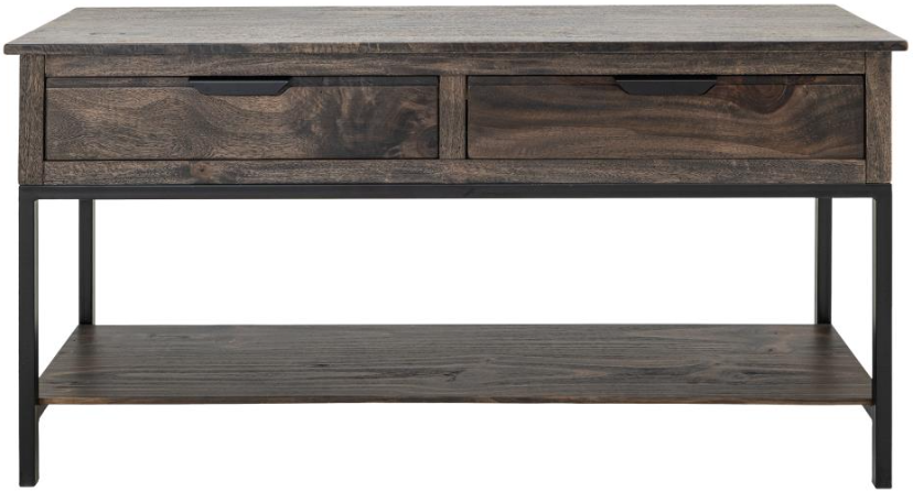 The Dark Mita Sofa Table combines functionality with charm. Crafted from wood in a rich black finish, it features two drawers for convenient storage and a lower shelf for added display space. Its compact design makes it a perfect accent piece for any living room or seating area.Read More