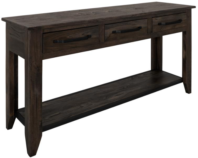 The Dark Teak Sofa Table combines functionality with charm. Crafted from wood in a rich black finish, it features three drawers for convenient storage and a lower shelf for added display space. Its compact design makes it a perfect accent piece for any living room or seating area.Read More