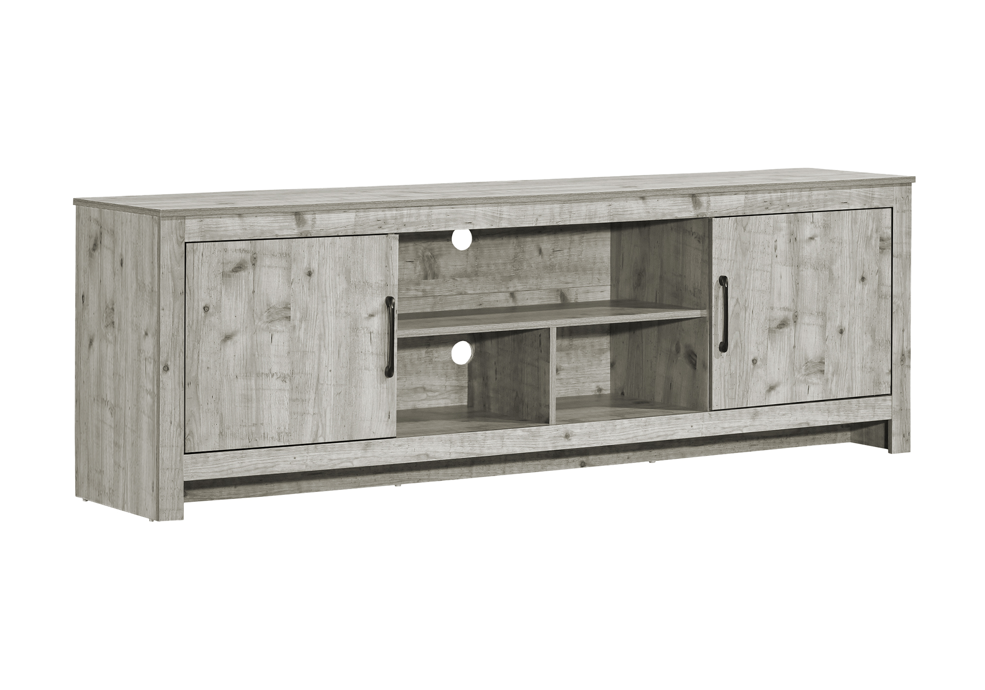 Améliorez l'esthétique de votre salon ou de votre chambre avec notre superbe meuble télé de style transitionnel de 72 pouces, doté d'une finition gris rustique en stratifié sur tous les côtés.Read More
