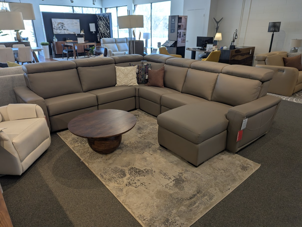 Sectionnel 6 morceaux en cuir avec 1 siège condo inclinable motorisé, appui-tête motorisé et lombaire.Read More